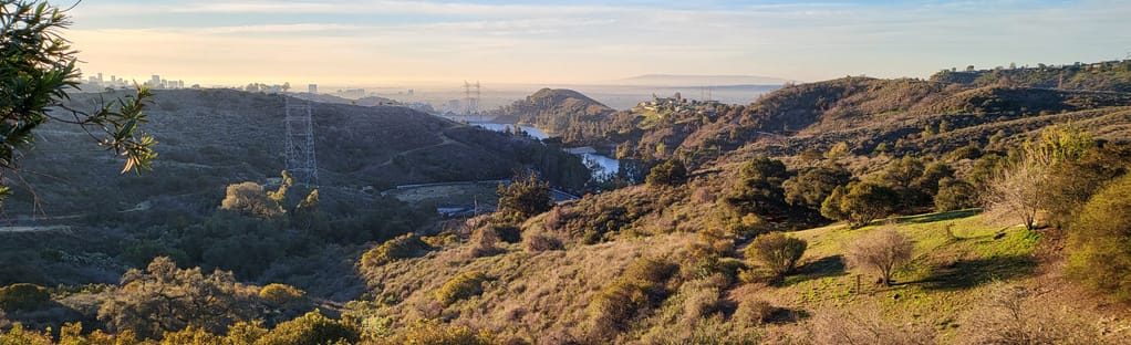 Beautiful Panorama view at top by The Wisdom Tree. While out on the trail you will. Hiking up to Cahuenga Peak via the Burbank Peak Trail is a quick and easy adventure that reveals some beautifully scenic views of the Los Angeles cityscape.