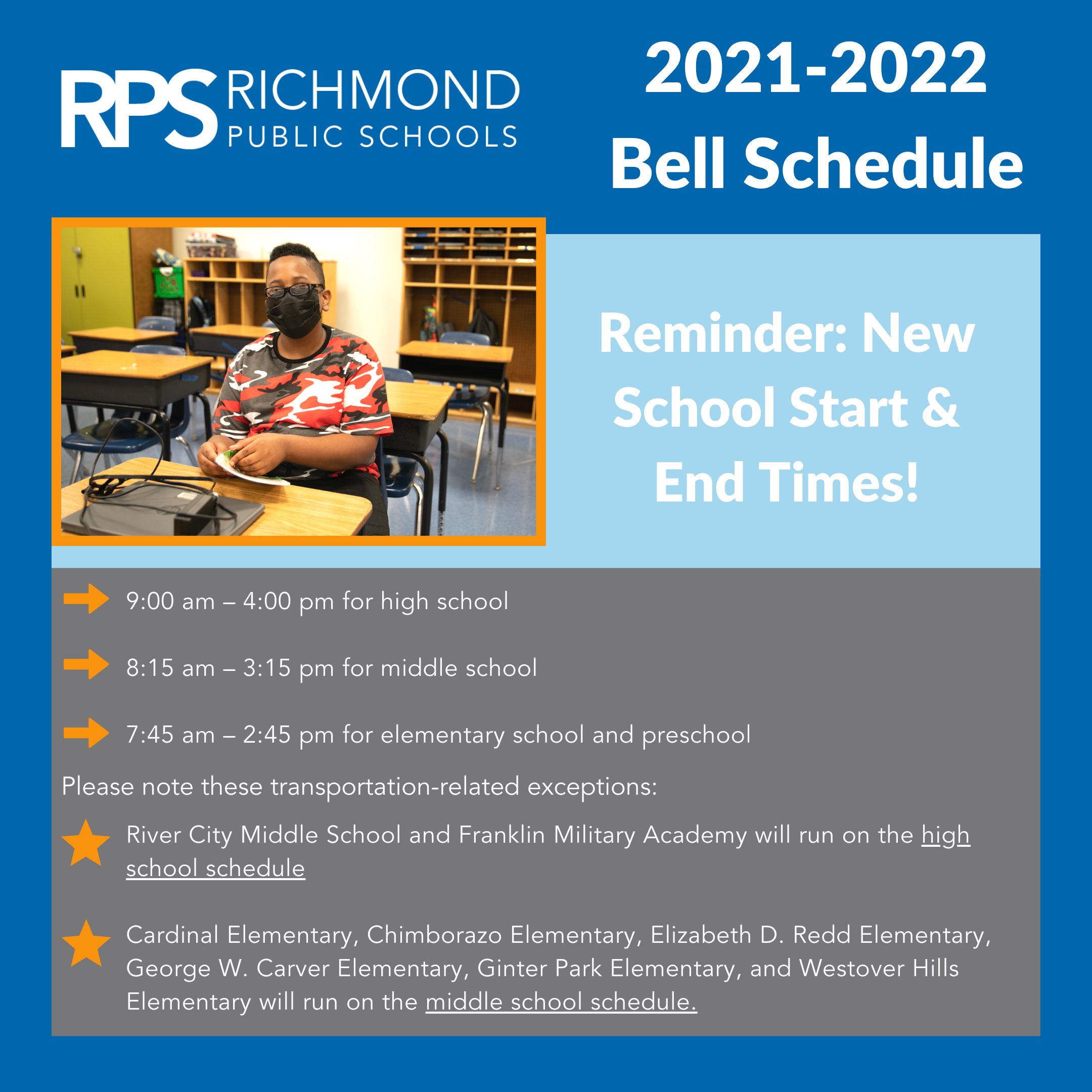 Richmond Public Schools On Twitter The First Day Of School Is Wednesday September 8 Be Sure To Double Check Your Schools Start Amp End Times As These Have Changed This Year Updated